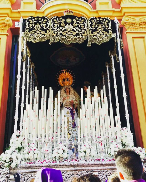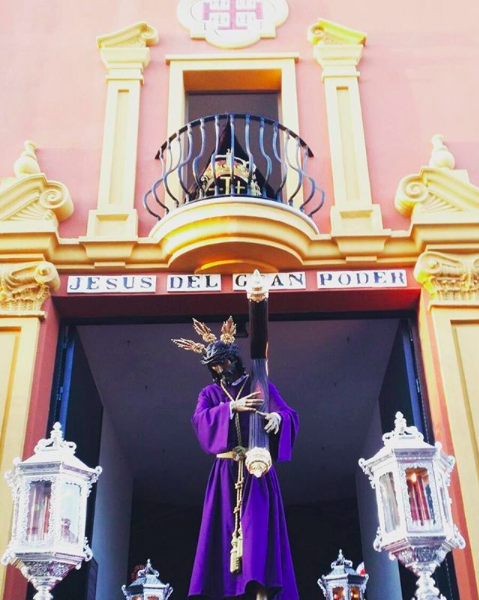 Nuestra hermandad hace estación de penitencia en la Madrugá del Viernes Santo. Se compone de un paso de misterio con la imagen de Nuestro Padre Jesus del Gran Poder, que representa la escena en la que Jesús lleva el madero a cuesta; y el paso de palio con la imagen de Maria Santísima de las Mercedes y San Juan Evangelista.